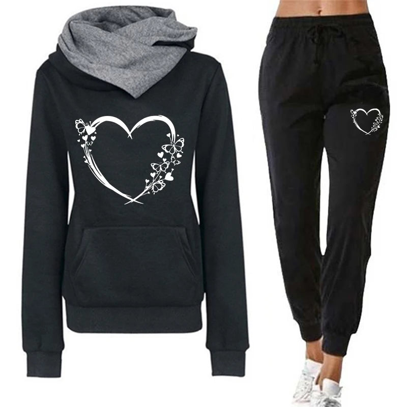Fjärilsryck Hoodie Set | Trendig och Bekväm Klädsel för Kvinnor