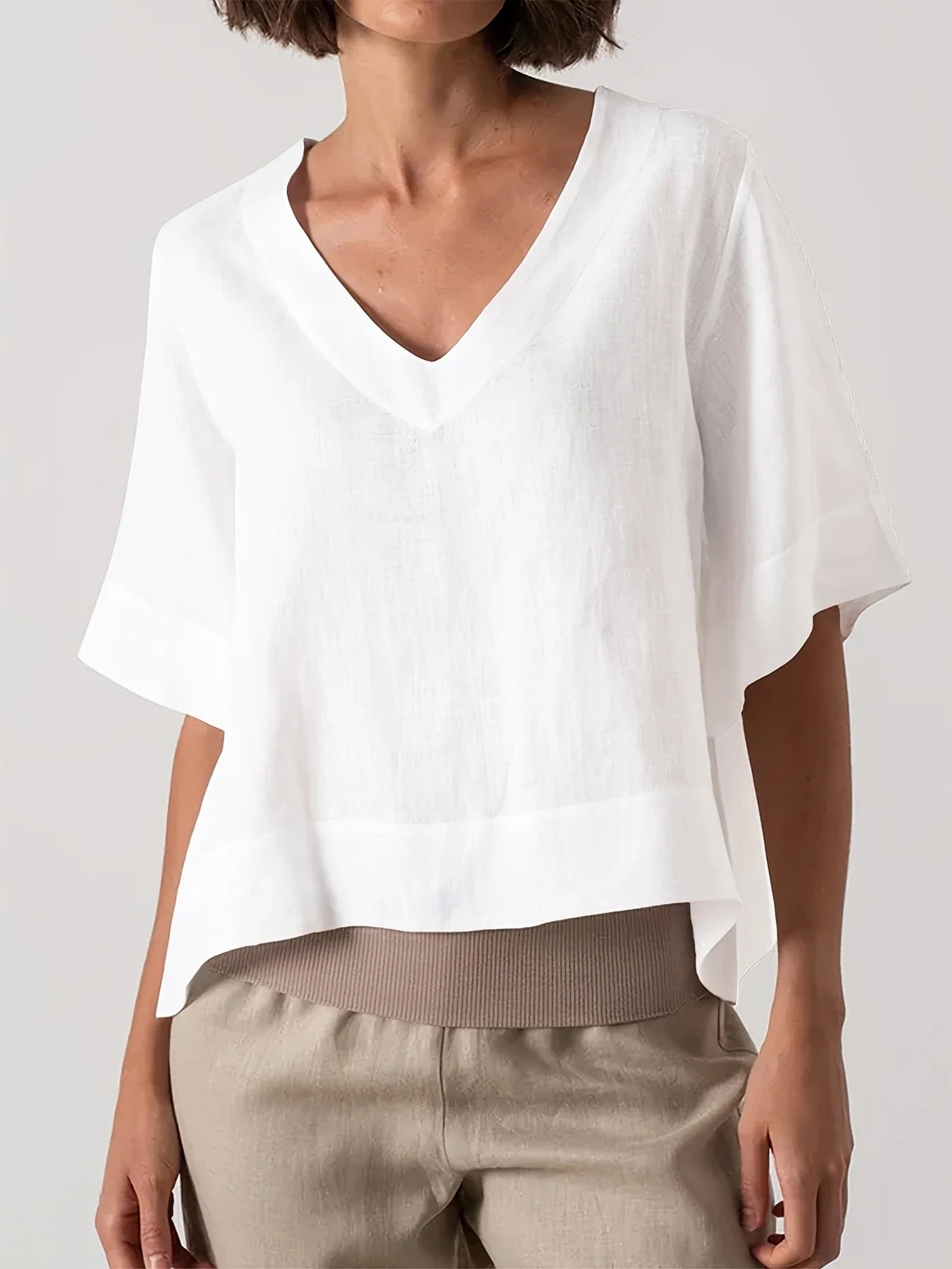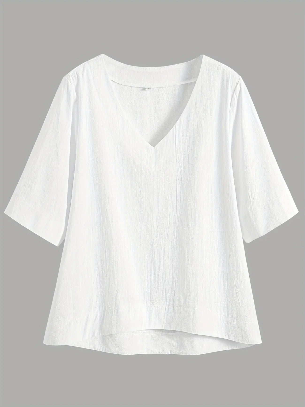 Mattea Lös Passform V-Hals Topp - Andningsbar och Elegant Stil för Alla Tillfällen